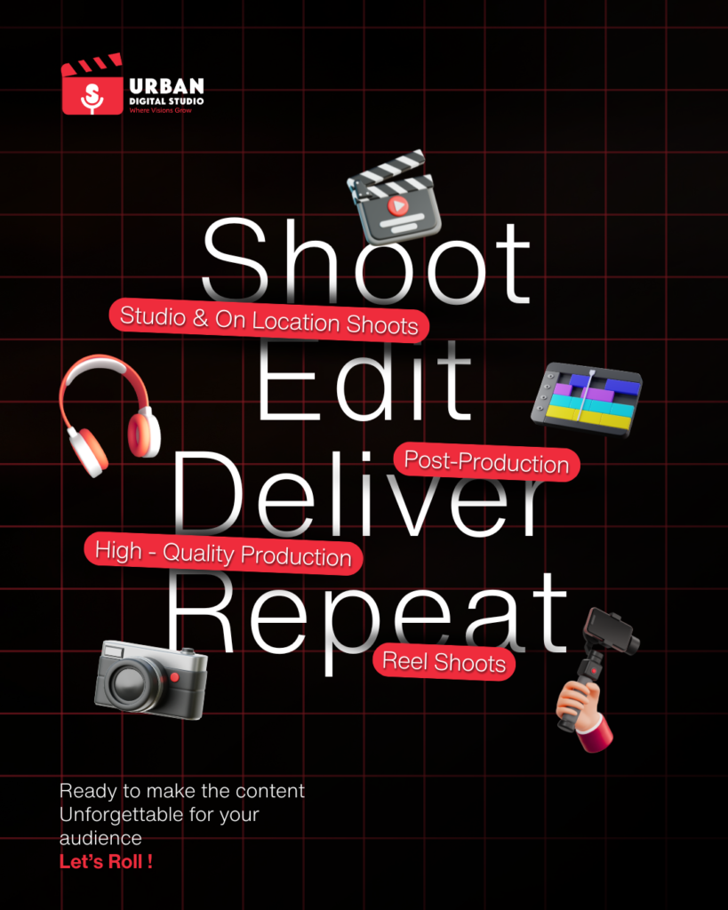 Our studio provides services like reels editing, green screen recording, and high-quality video production using professional equipment and creative support.